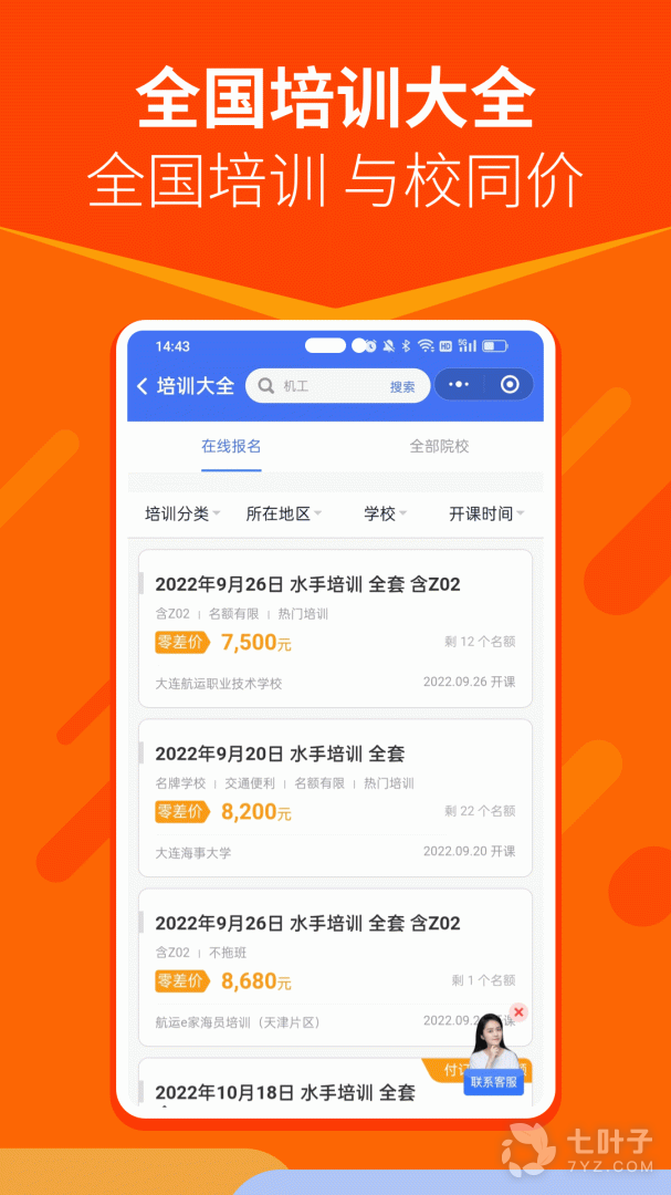 4、院校培训开班一键报名,在线办理服务薄、合格证书、适任证、海员证等船员证书