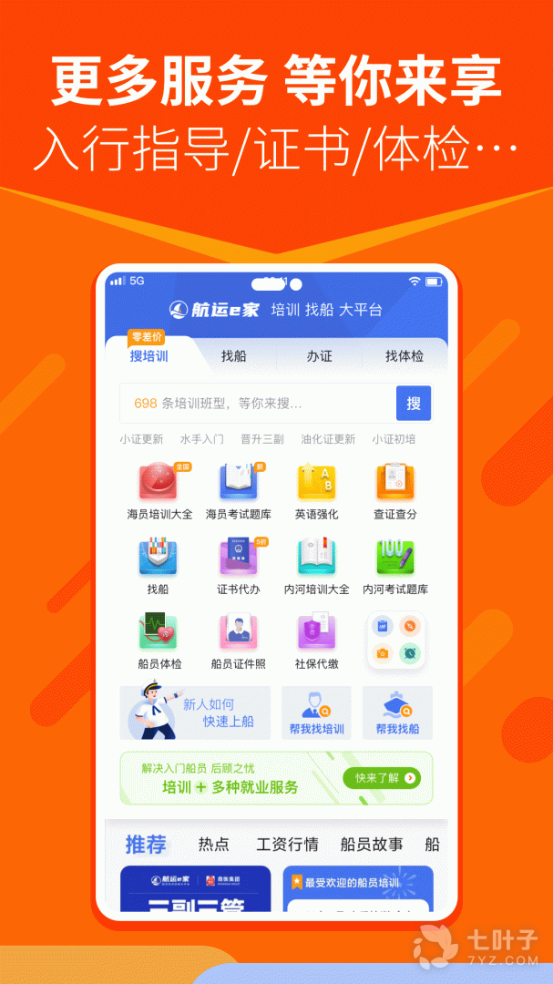 5、支持网上一键办理船员培训、办证