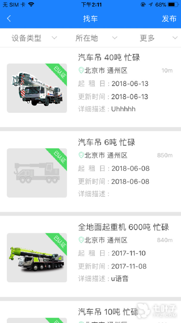 2、当机主在e家机械中录入了自己的车辆信息之后,可以把自己车辆一键发布出租