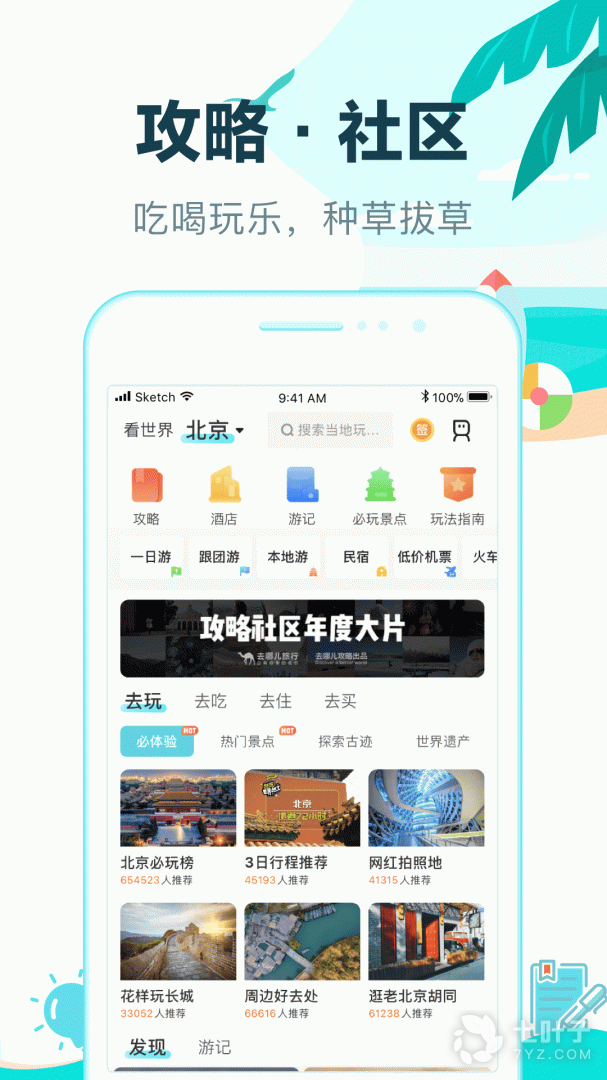 1、旅游攻略:对于这款软件来讲,有一个特色,就是旅游攻略的推荐,就是别的旅行者去过后,玩过,吃过,拍过的一些攻略,可供新去的人做参考,这点相当不错。