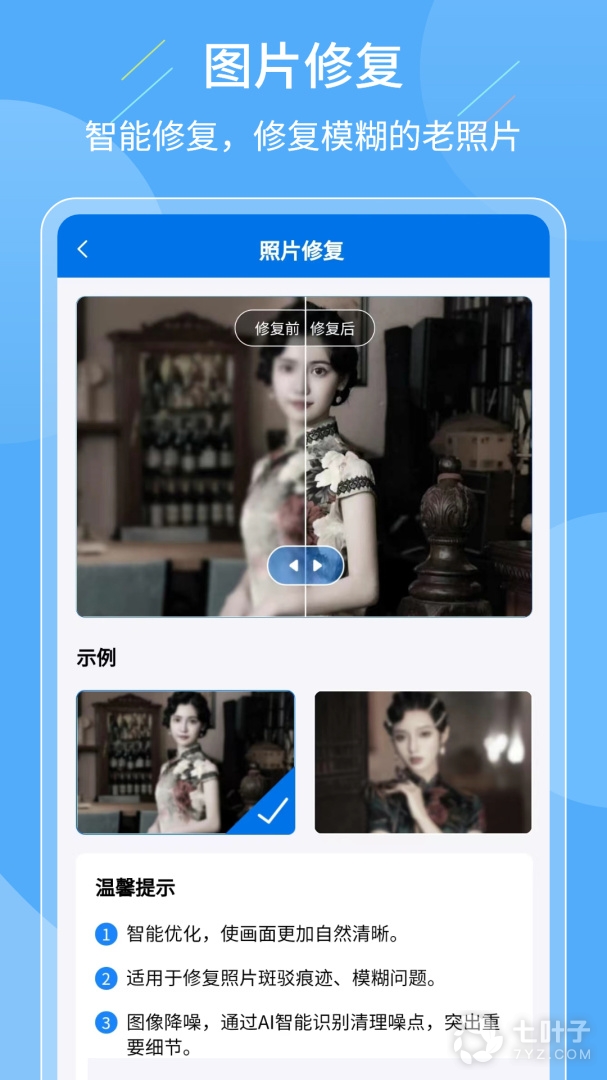 2、可轻松将旧照修复成崭新的照片,还原照片颜色、纹理质感等