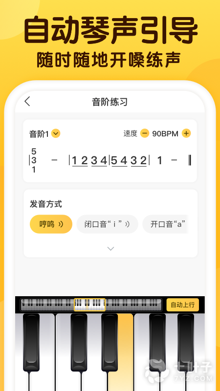 练习页面五线谱、简谱展示,底部可发声琴键辅助,让练习歌唱及发声更高效便捷。