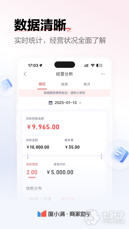 2、这款软件提供了微信、支付宝、银联等多种收款方式,帮助商户实现高效收款,同时提供了账单查询、收益统计等功能,需要的可以来度小满商家助手进行使用