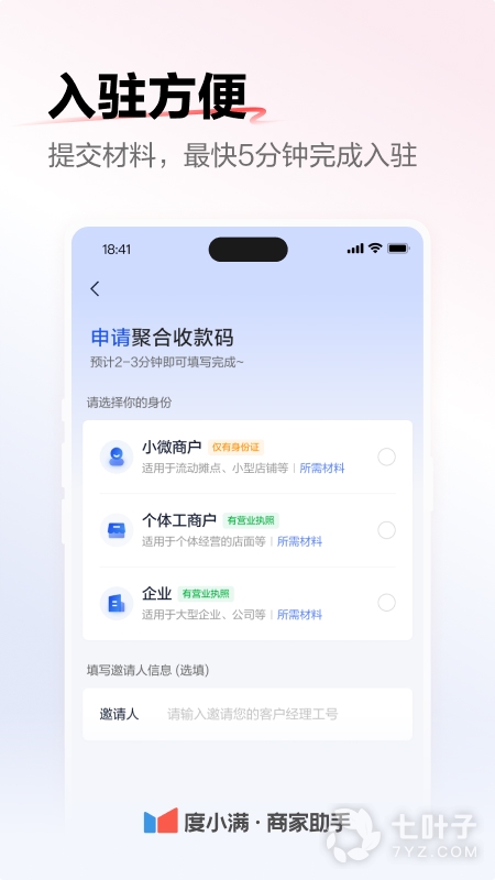 度小满商家助手APP是一款为商户提供的生意经营专用软件。主要为生意经营伙伴的收款场景提供多种收款方式、账单查询等功能。同时支持已入驻合作伙伴通过APP拓客从而获得返佣,商户可查看其经营情况,帮助商户进行相应的经营分析。