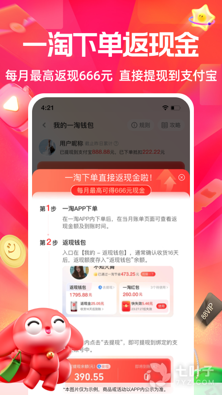 登录一淘网或者在一淘手机端,选择返利商品,按正确流程下单即可获得返利啦~ 正确下单流程: