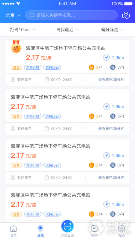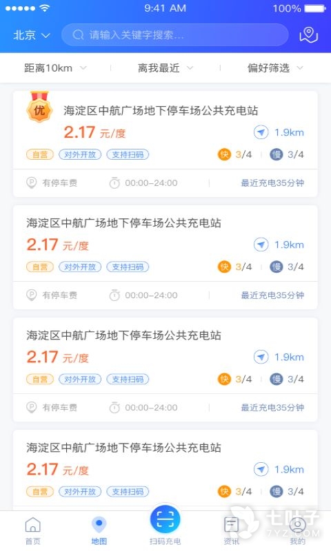 打开地图就能看到附近的充电站点;