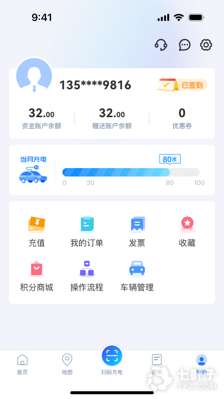 2、我的:查看自己的账户信息、余额、收藏的电站