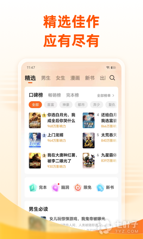 1、近百种分类、上千个标签,权威小说榜单,一站式精彩呈现,不再为找书而头痛