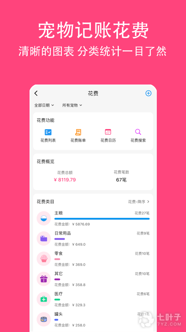 2、只用来记录你们的爱宠生活日常,可以记录宠物的成长信息、体重信息,宠物开销;都会有相应的图表和柱形图来表示,非常的清晰可见,还可以在这里记录下与宠物的美好瞬间