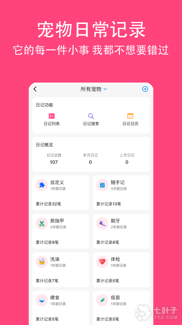 4、您可以记录宠物生长记录、异常情况、宠物病历记录、遛狗记录、宠物记事等等