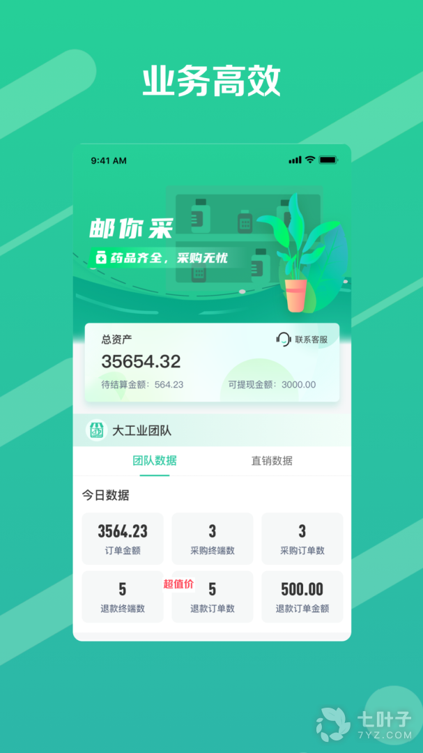 3、邮业务,电商销售服务平台,支持客户管理、分销管理、业绩查询等功能,为业务员带来更便捷的移动办公服务,提高日常工作效率