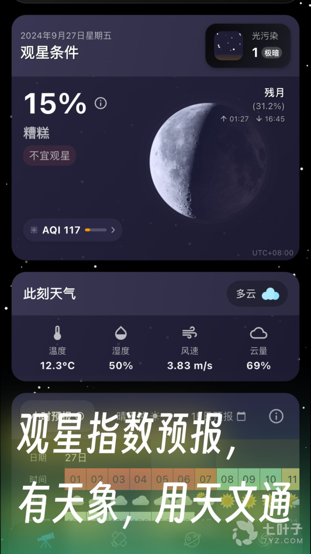 2、可以实时观测天气状况、空气质量、污染情况、行星轨迹等等