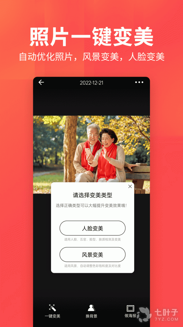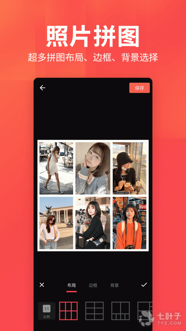 2、强大的照片编辑、拼图功能,实现对照片的各种编辑、一键美图;美颜相机、美颜自拍