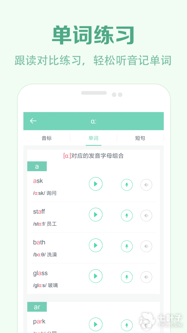 2、对于学英语的用户来说,音标的学习是非常重要的,这款软件就能让你不再迷糊