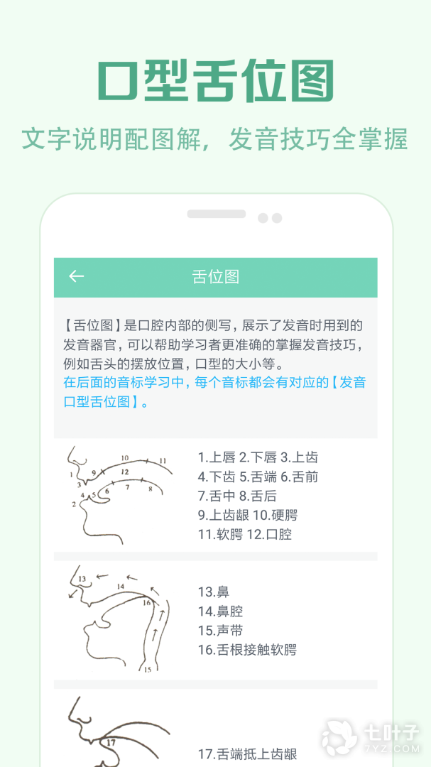 5、为用户提供发音技巧以及口型图,让你能够学习更准确的发音方法;