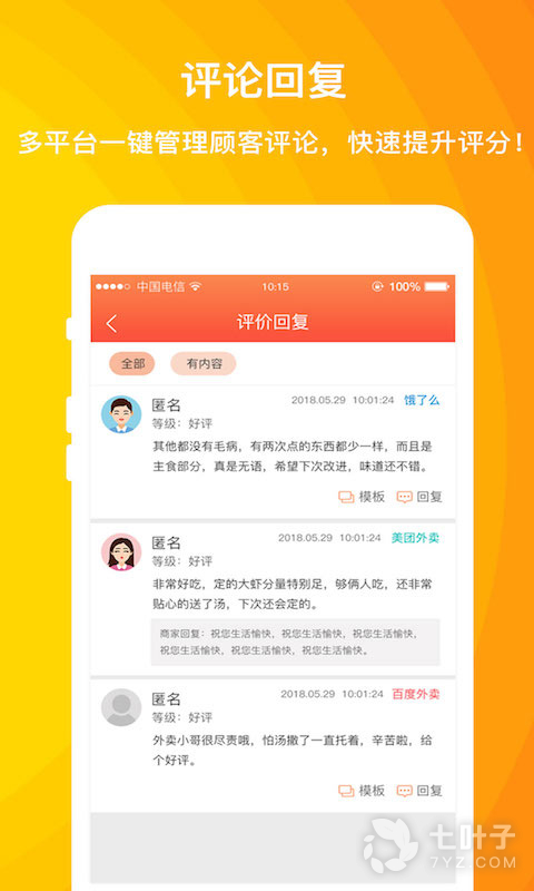查看多平台顾客的评价并给予回复