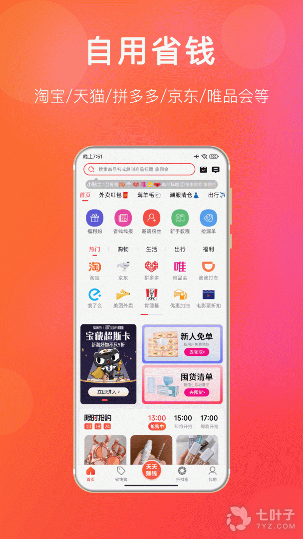 女装、男装、鞋包、美妆、护肤、家居、母婴、零食、数码...优惠一网打尽