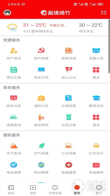 3、画境绵竹是绵竹市融媒体中心面向本地用户开发的移动资讯服务软件,通过这款软件可以第一时间获取到最新的热点资讯,也是市政府、街道办发布重要消息的权威平台,并提供党建服务、政务服务等诸多方面的功能,需要的可以来画境绵竹进行使用