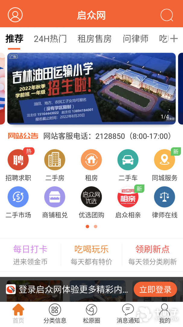 1、启众网是专门为松原地区打造的本地综合资讯服务平台,松原人可以在这里浏览到最新的本地头条,同时还可以对热门事件进行评论回复,也为本地提供了二手交易市场和求职招聘等生活服务