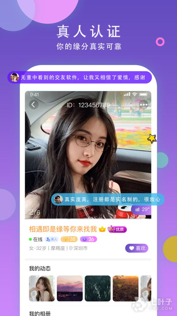 1、真实用户:具有真人认证标识的用户都是经过严苛的审核流程,同城聊欢拒绝机器人陪聊,信息真实可靠,拒绝照骗