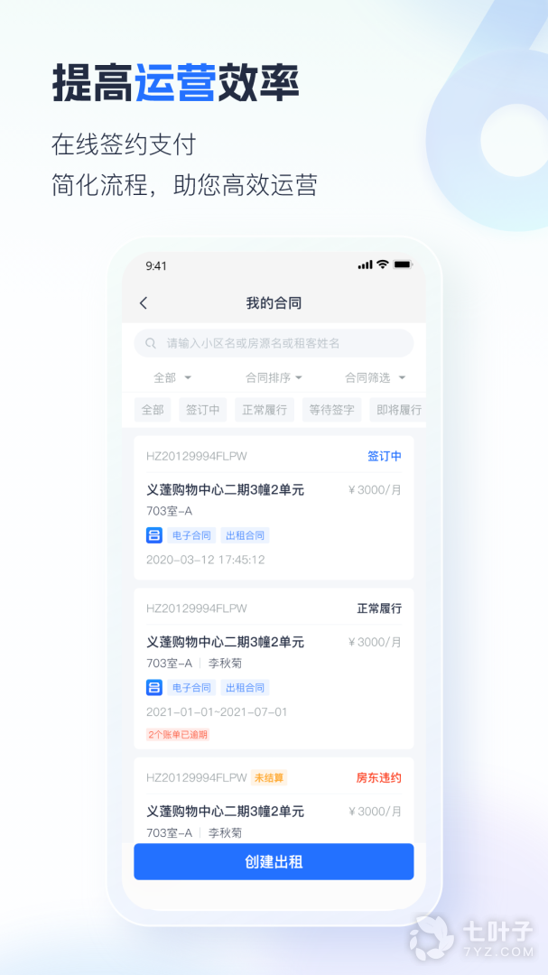 3、在线签约、在线支付,减少人力开支,提高运营效率
