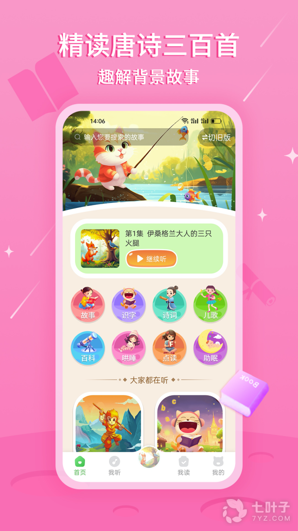 大嘴讲故事是一款致力于儿童读物的APP,内容涵盖诗词、传记、千字文等古今中外经典文学作品。
