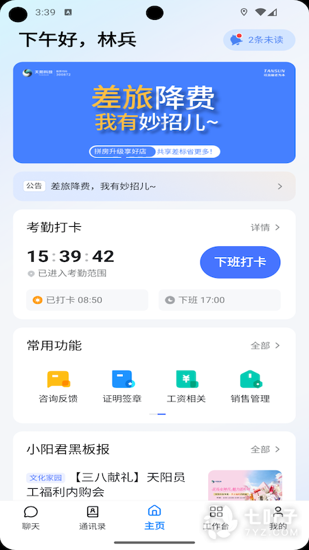 2、天阳科技为所有的员工们带来了非常便捷的移动办公服务,超多的强大功能也使企业省了不少事,这款软件支持员工们考勤打卡,签到,待办/已办等等服务,而且可以直接在平台上进行请假,领导会直接在平台帮助你审核,这样也提升了大家的办公效率,是企业必备的软件