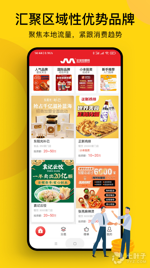 2、汇集特色餐饮、教育培训、休闲食品、家居建材、美容养生、汽车环保、干洗零售、生活服务等热门行业商机,涵盖业内所有主流项目,例如奶茶、火锅、小吃、早教、等火热开店项目,满足您个性化的创业投资需求