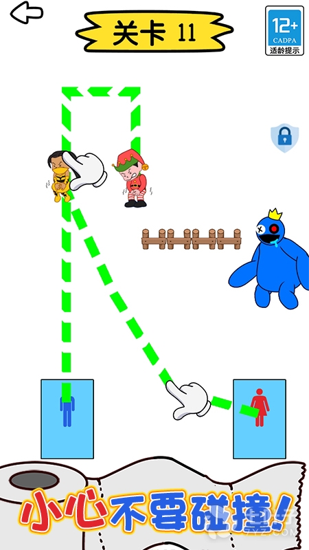 3、整个游戏的流程就是主要被绳子困住了的玩家后面还有很多障碍物需要摆脱困境