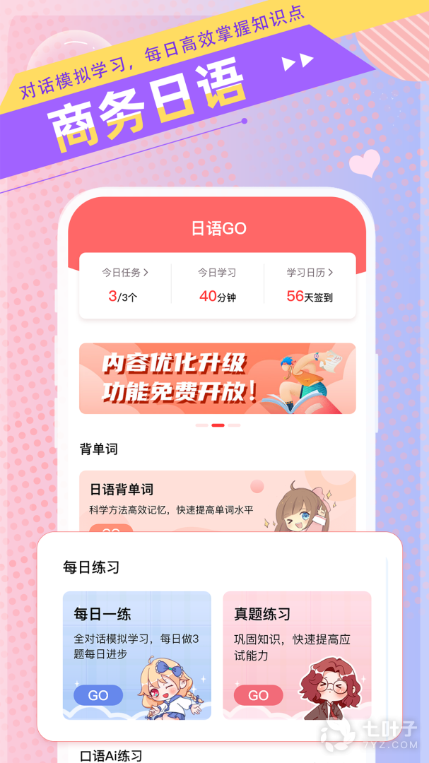 3、对于正在日语学习之路上奋力前进的小伙伴,这个日语go就是一个你的贴身良师,用轻松有趣的方式来解读各个知识点,配合不同版本的学习教材,更有海量的针对练习和日常积累的小短句,让你以一个轻松的心情来学习,最大程度的调动起学习积极性