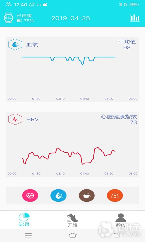 2、当软件与设备进行连接以后,可以通过软件知道身体一些基本的状况,包括血压心率监测等等