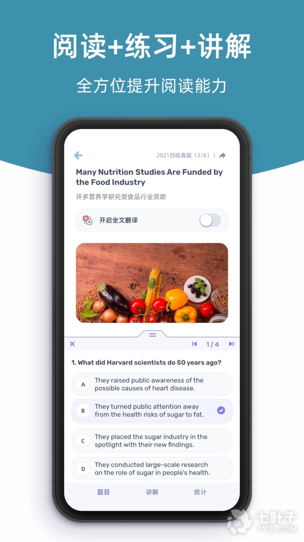 2、英语四级、六级和考研阅读软件。不论你是学生还是职业人,任何年龄段都可以在这个APP上学习英语的,尤其是需要考级的小伙伴们,打开APP就可以开启自己的学习之旅,根据你的实际情况来制定适合你的学校计划和目标,高效学习,提升英语能力