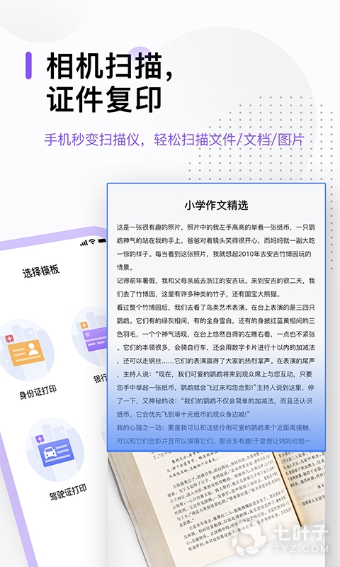 5、相机拍照即可生成扫描文档,连接打印机一键打印,省心省力,智能手机扫描仪; 可以打印身份证、营业执照、驾驶证、支持多吃菜照片打印