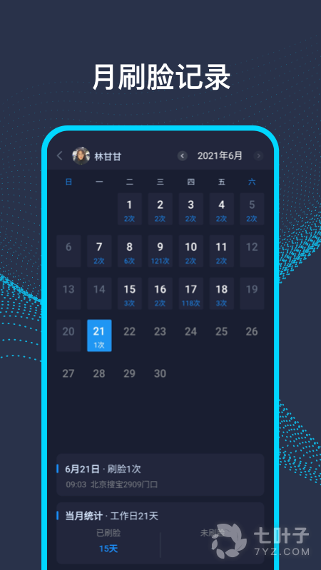 管理员可查看员工的单日刷脸记录,整月刷脸记录,及按部门查看刷脸记录。