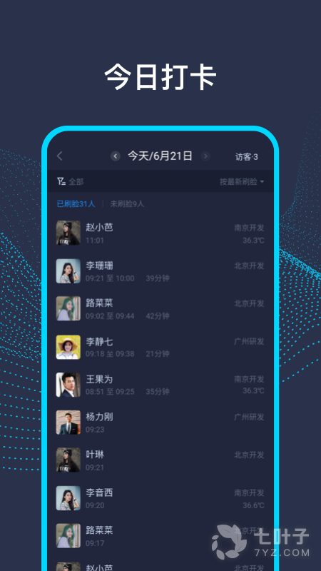 3、每天的打卡情况都会实时的记录,你可以直接在手机上面来查看,处理工作更加的简单。