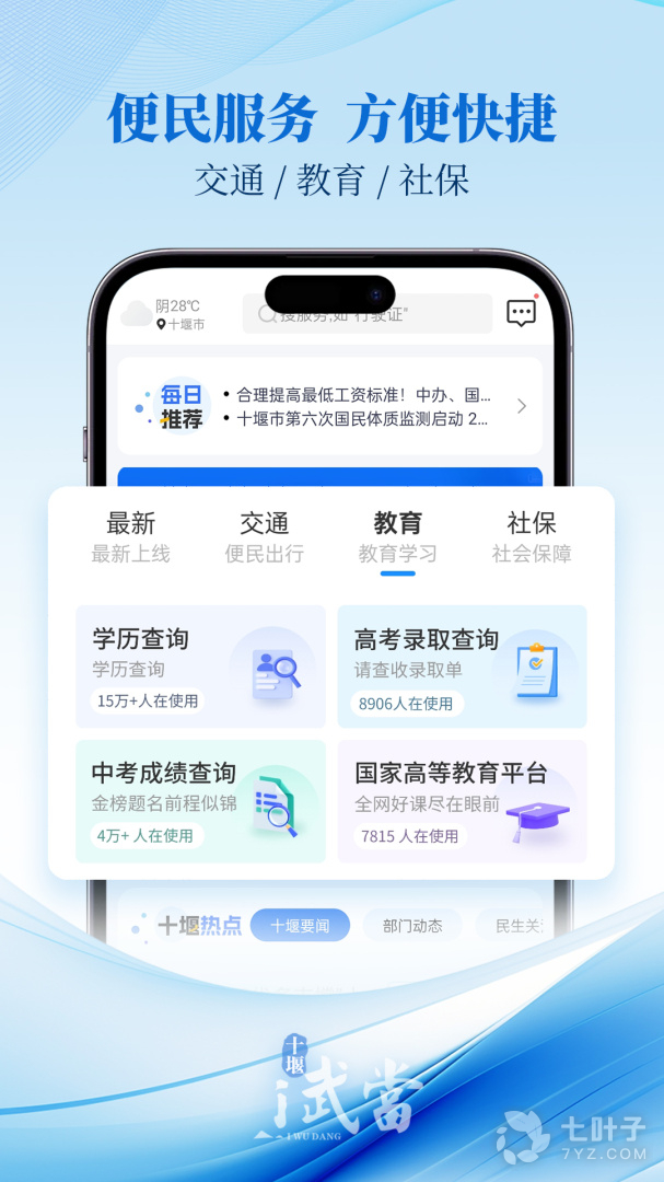 “i武当”城市服务平台围绕市民生活,强化城市服务治理和城市服务中台能力建设,构建让群众满意、让企业满意、让政府工作人员满意的一站式城市服务平台