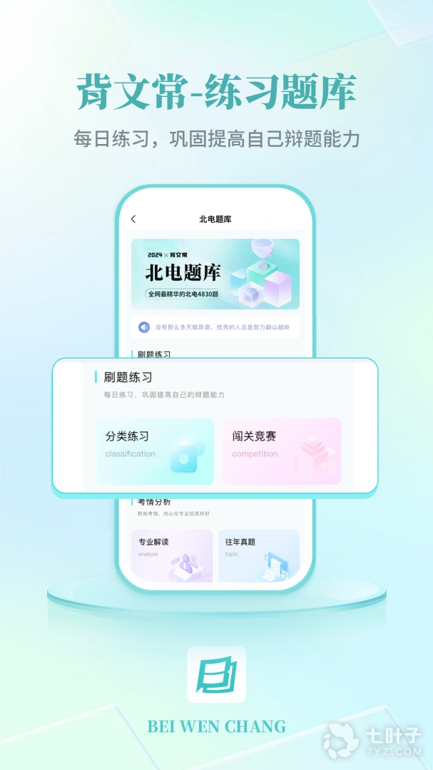3、背文常带给大家,软件为艺考学生提供理论和文化课考试的课程学习,可以在软件中随时学习知识点,可以在线刷题,拥有名校的历年真题,让学生能够了解和掌握考试难点,还有最新的艺考资讯带给学生,让学生能够第一时间接受报名考试信息,顺利备考进入心仪的学校