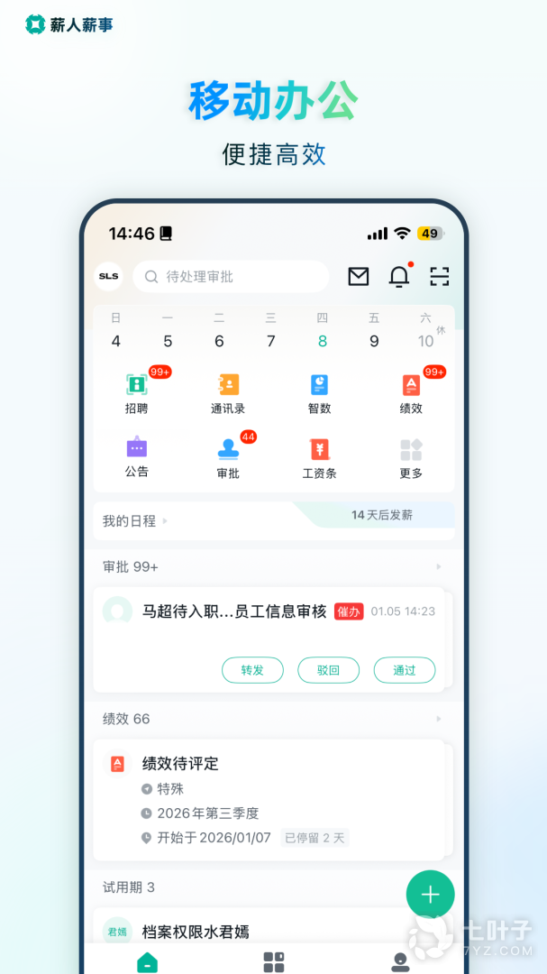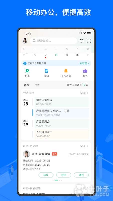 配合多种办事提醒,丰富的互动元素,从而实现员工高效处理个人业务,同时结合轻松愉快的工作气氛。