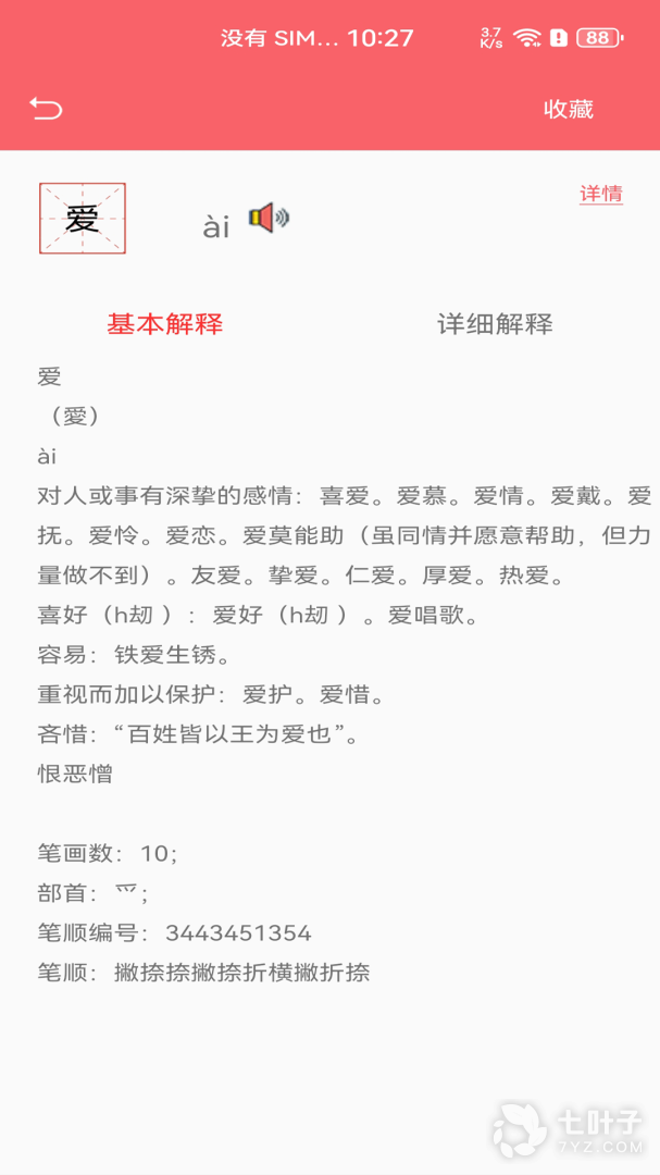 1、平台可以在这里查读音、查字义,甚至连笔画数都有哦,检索方式也是有很多中的,如部首、拼音等等,每一种方式都是很简单的,而且用户遇到有需要的还可以进行收藏,对了,查阅的历史也可以实时查看呢