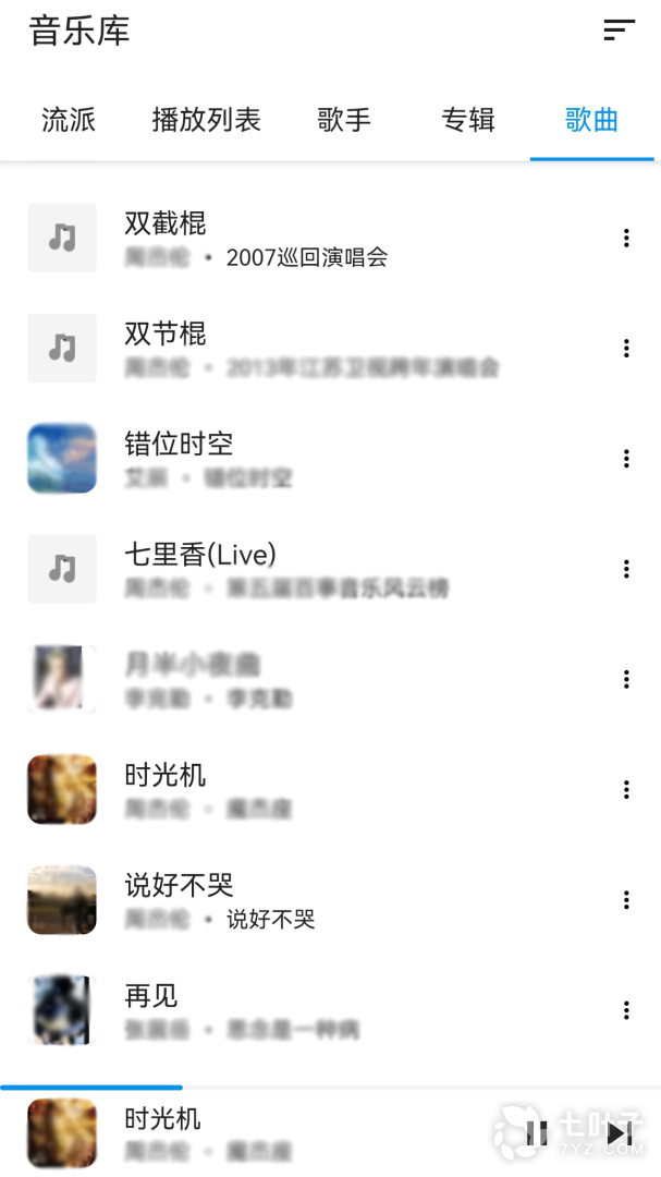 ★顶部的标签有最近播放、最近添加、艺术家,专辑,歌曲,播放列表和流派可供用户按各种习惯的方式选择曲目欣赏,界面类似,方便用户快速筛选定位歌曲。
