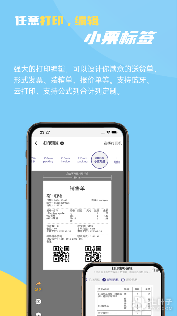 7. 单据打印支持双表格打印,支持上下网格分离打印