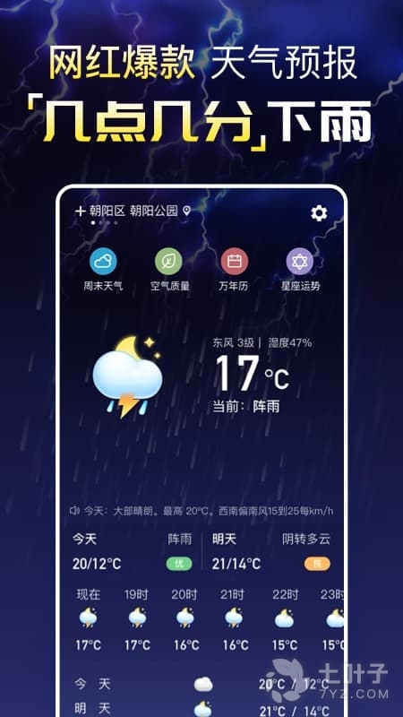 5、星座热门天气应用和8M内存不消耗流量,达到未来48小时分钟级天气预报