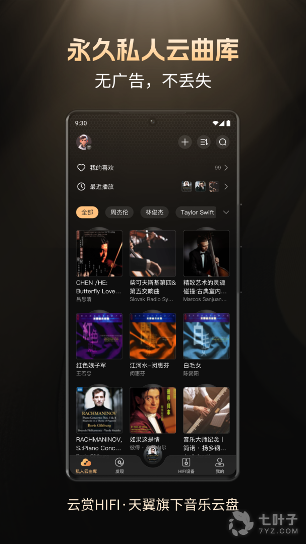 2、永久保存,私人云曲库,想听的都可以聆听