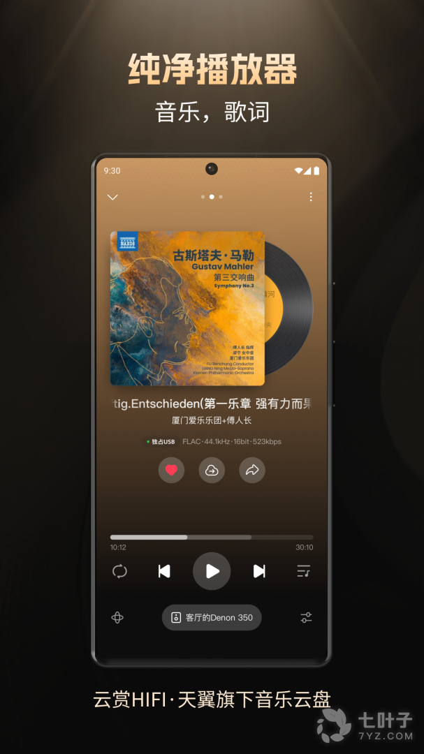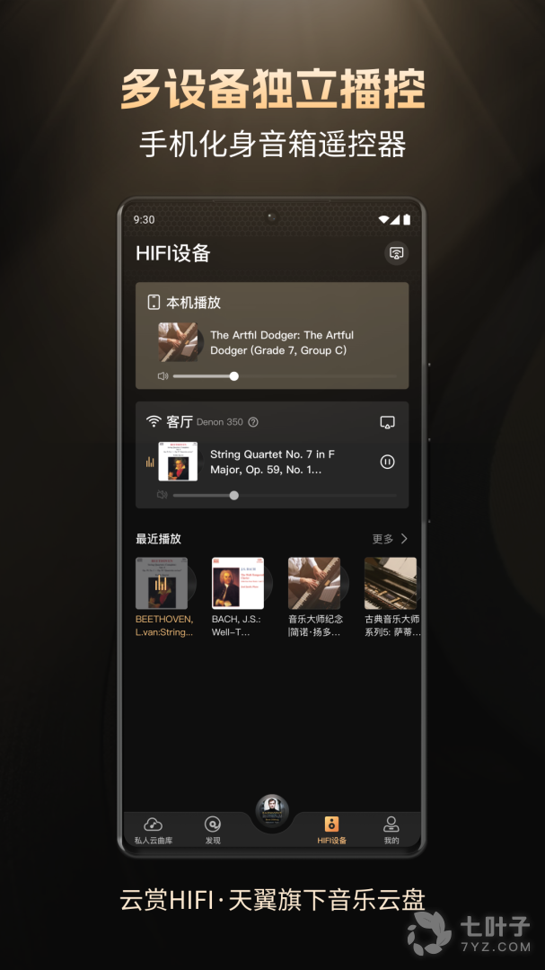 3、DLNA连接播放:通过DLNA推送至您的音箱设备进行播放,可多设备播放,极速稳定。