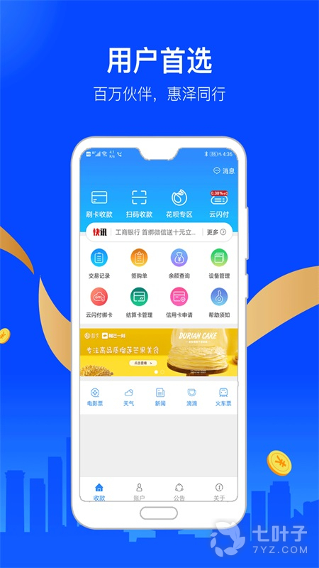 1、支持刷卡收款、扫码收款、银联立码付、签购单等多种功能,操作简单,移动收单更方便