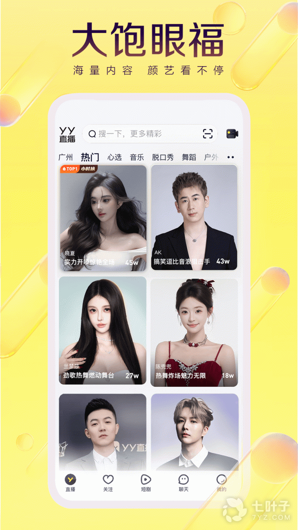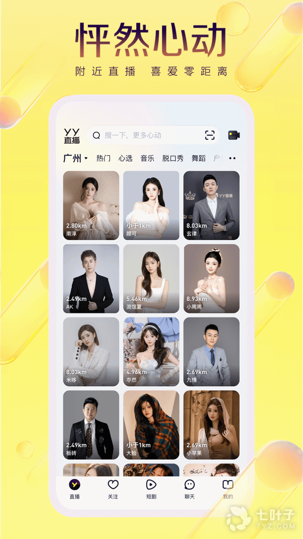 yy直播全新体验:直播+短视频+交友社交平台。