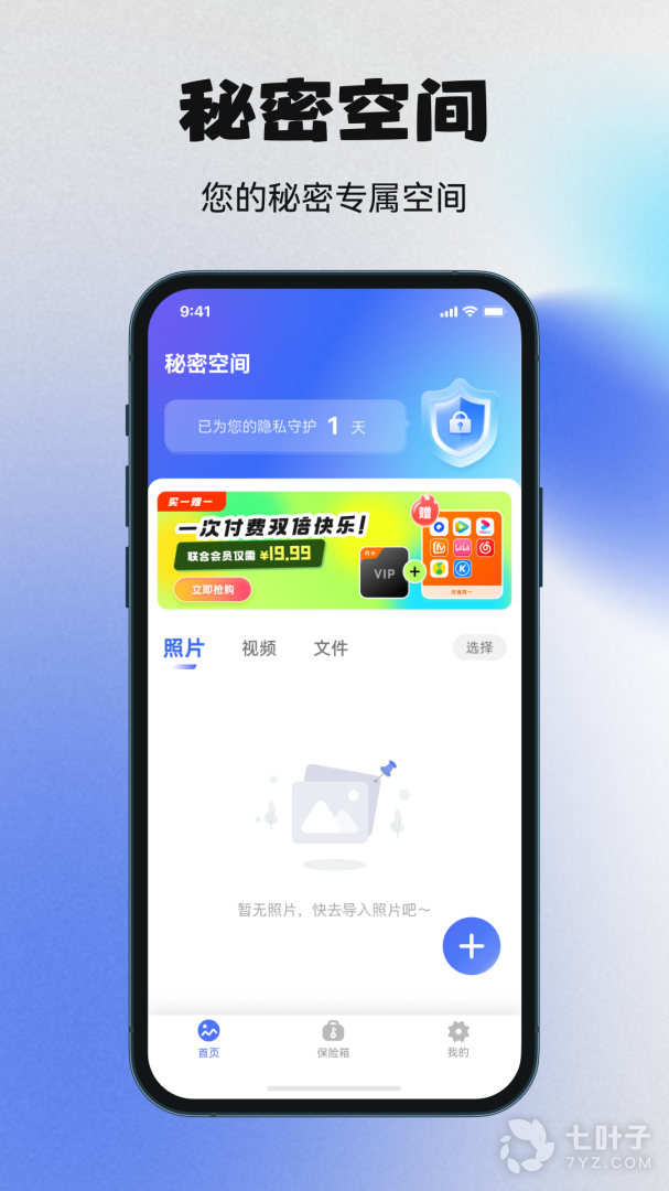 2、秘密空间中您可以在app中轻松的导入手机的隐私照片、视频进行保存,这样就可以帮助用户保存隐私信息