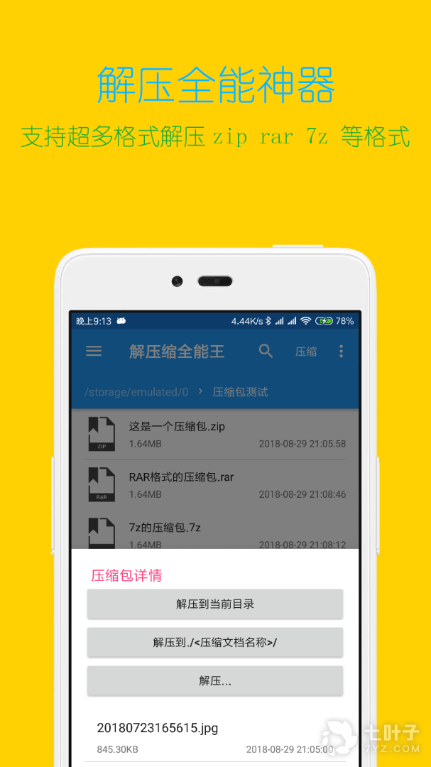 1、支持的格式全速度快,同时支持文件压缩与解压。解压缩全能王堪称安卓解压缩软件中的上品。对于一般的无密码压缩文件就直接解压就完了
