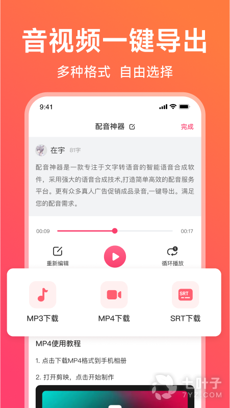 一键导出MP3,多平台分享至好友4、免费配音:
