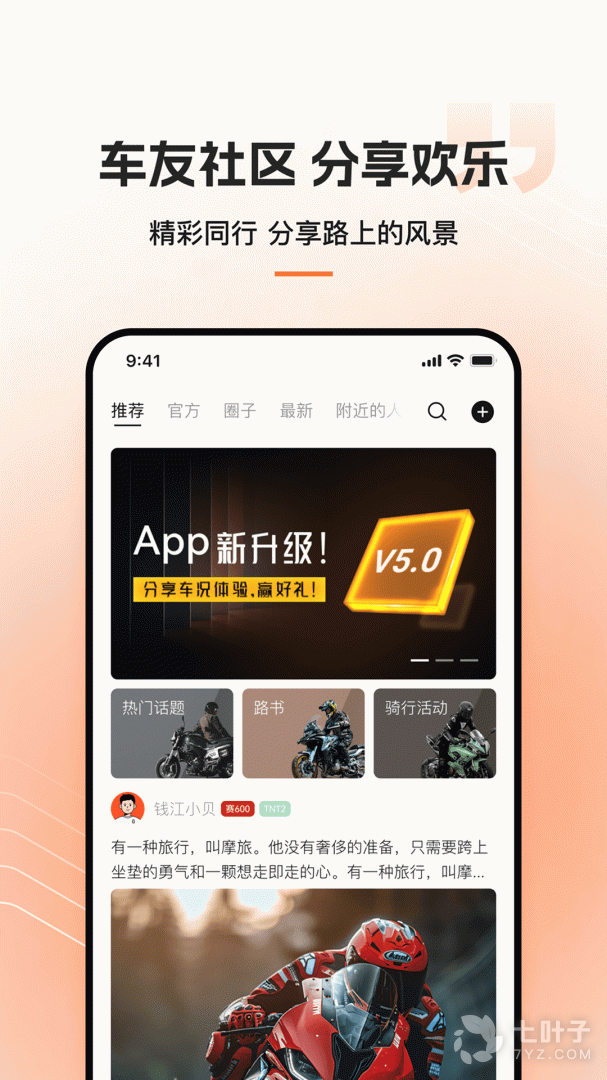 车友互联--丰富的圈层信息,提供官方组织及车友自组织的圈子活动、轨迹分享、动态、排行、周边摩友、关注、话题等,让车友自在交流,出彩骑行。
